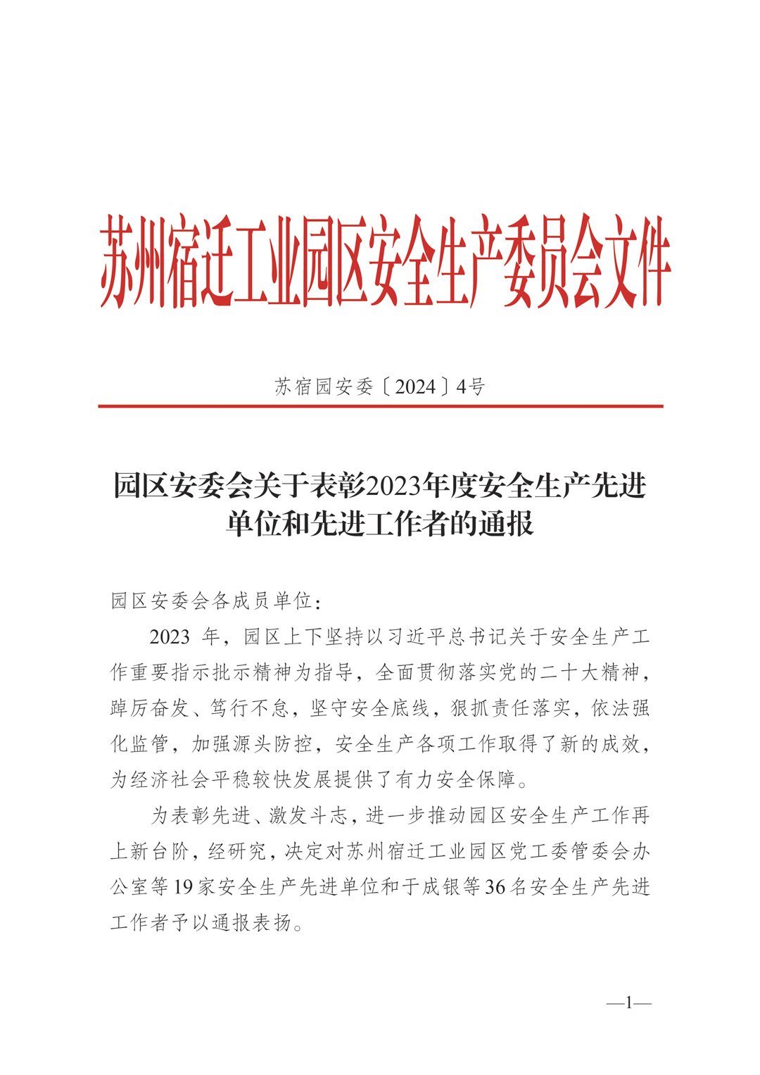 被蘇州宿遷工業(yè)園區(qū)安全生產(chǎn)委員會評為