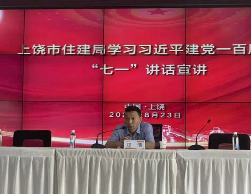 8月23日上午,秋高氣爽,上饒市住建局黨組書記、局長(zhǎng)鄭清在住建局黨政辦主任余道福陪同下,深入上饒市建筑科技產(chǎn)業(yè)園(建業(yè)硅谷),宣講總書記“七一”在慶祝中國(guó)共產(chǎn)黨成立一百周年大會(huì)上的重要講話精神。鄭清同志的宣講提綱挈領(lǐng)、簡(jiǎn)明扼要、旁征博引、深入淺出,贏得了聽眾陣陣掌聲。大家表示,聽了鄭局長(zhǎng)的宣講,對(duì)總書記的“七一”重要講話精神有了更加全面深刻的理解,對(duì)指導(dǎo)企業(yè)今后發(fā)展和提升員工素質(zhì)做好本職工作具有重要意義。