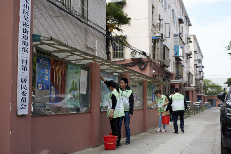 “走!帶上工具,大家一起去打掃衛(wèi)生!”另一組志愿者們,有的拿著鏟子、刷子,一張張仔細(xì)地鏟除居民樓上張貼的小廣告;有的手拿夾子沿著社區(qū)主干道撿拾垃圾;也有志愿者主動拿起抹布,一塊一塊仔細(xì)地擦拭社區(qū)宣傳欄。在大家的共同努力之下,社區(qū)環(huán)境煥然一新,變得更加整潔、干凈,路過的居民紛紛向志愿者們豎起了大拇指,現(xiàn)場一派其樂融融。
