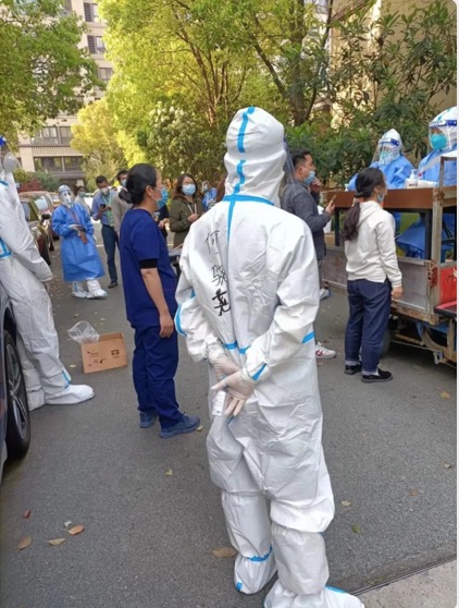 宏盛建業(yè)集團(tuán)綜合發(fā)展中心何驍堯也積極響應(yīng)閔行區(qū)關(guān)于投入社區(qū)防疫工作的號召,加入社區(qū)志愿者服務(wù)工作。穿上防護(hù)服,戴上防護(hù)面具。他不畏艱難,奮戰(zhàn)在社區(qū)核酸采樣點(diǎn)。維持著隊(duì)伍秩序,幫助居民們登記,更幫助老年人及行動不便的居民排隊(duì)。每一位檢測完畢的居民都需要有序進(jìn)行登記并從另一側(cè)離開以有效免交叉。來往的居民很多,在檢測點(diǎn)也需要頻繁對來往的人員進(jìn)行疏導(dǎo),雖說工作不難,但仍有很多的居民對需要繞場回家表示不理解,又需要耐心反復(fù)進(jìn)行規(guī)勸。作為一個初級“大白”的他在勸導(dǎo)一些態(tài)度較為“強(qiáng)硬”的居民的同時,也在反復(fù)克制著自己的不良情緒以避免不要的矛盾升級,始終保持耐心予以引導(dǎo)。